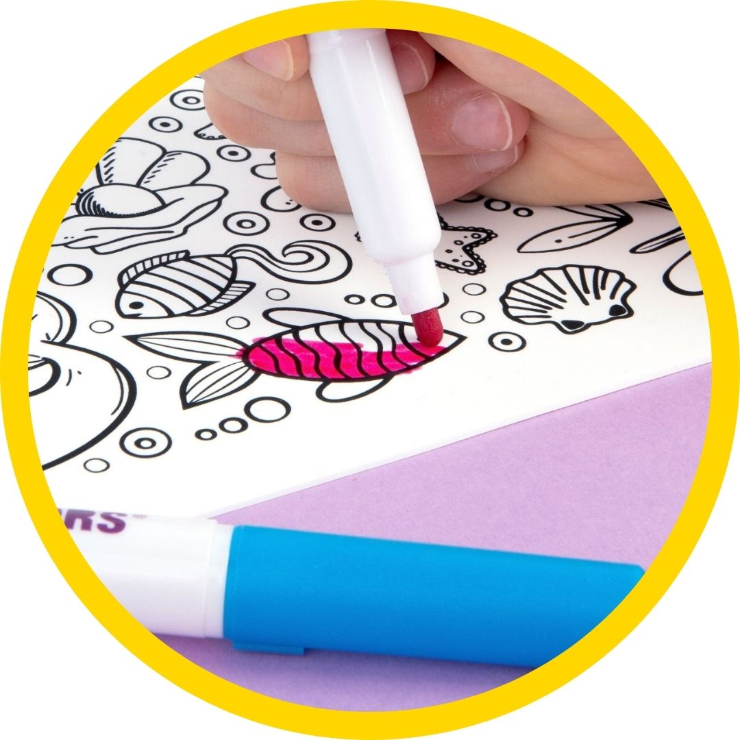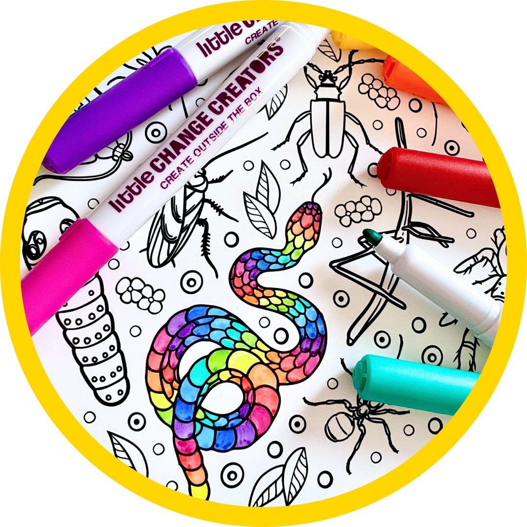 PRACTICAL & PORTABLE - Creative play isn't just for home! Our colouring sets are travel-friendly and oh-so-easy to pack into their pouch - markers included! Ideal for whenever the creative bug bites - planes, trains, automobiles, waiting rooms, and sooo much more!