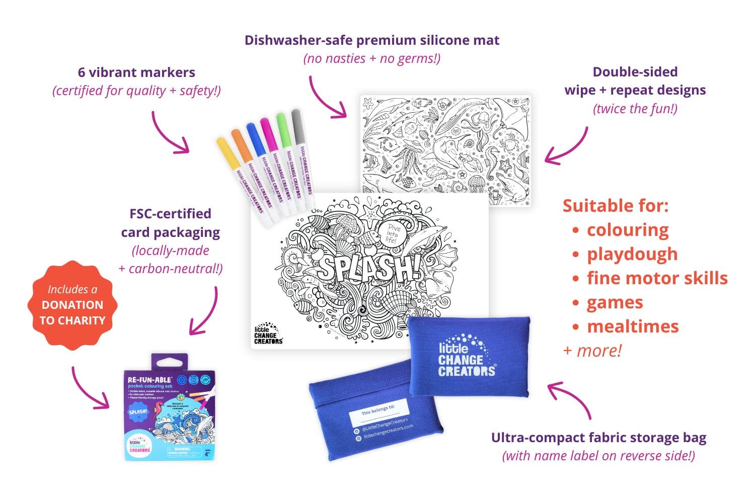Re-FUN-able™ Reusable Silicone Colouring Mats Are Created With Purpose